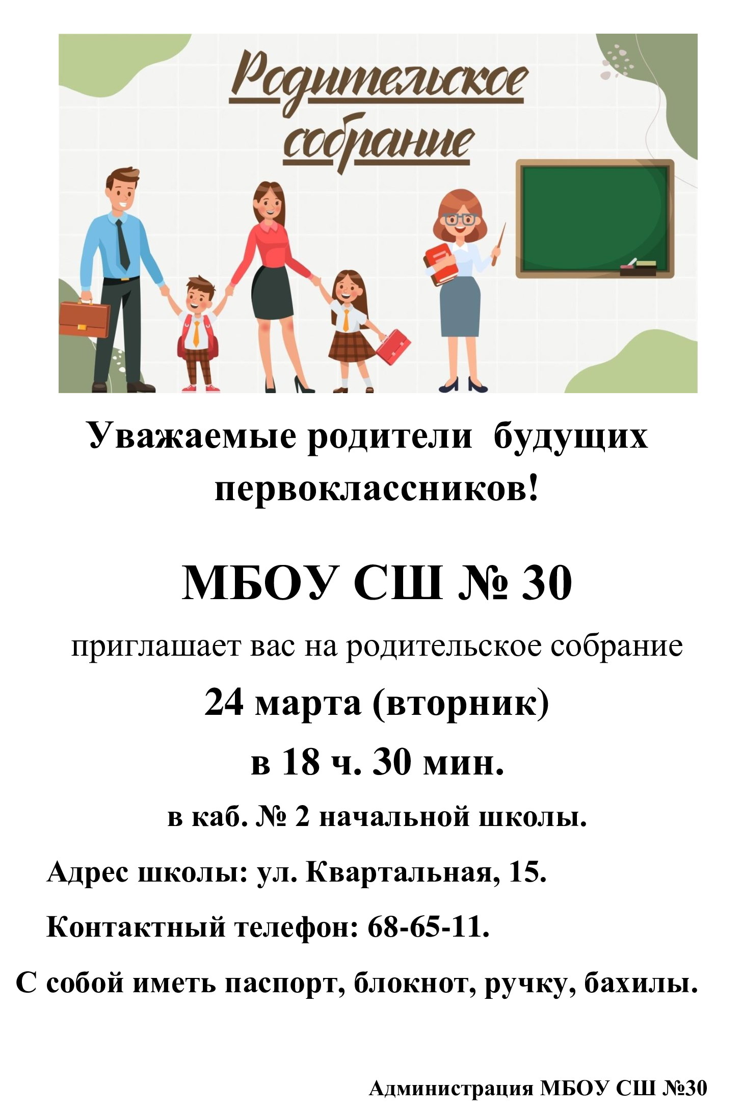 С 1 апреля по 30 июня - приём заявлений на обучение в первый класс для детей, проживающих на закреплённой территории. С 6 июля до момента заполнения ... Читать дальше » |